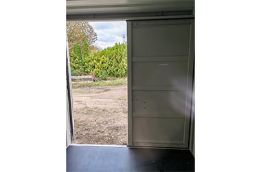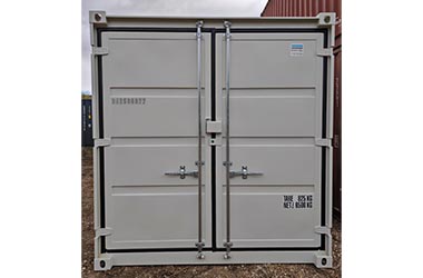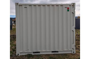 Der Lagercontainer besteht standardmäßig aus einer Stahlkonstruktion in Wunschfarbe mit langlebiger Pulverbeschichtung, einem feuchtigkeits- und strapazierfähigen Boden sowie einer Doppelflügeltür, die sich leicht öffnen lässt.